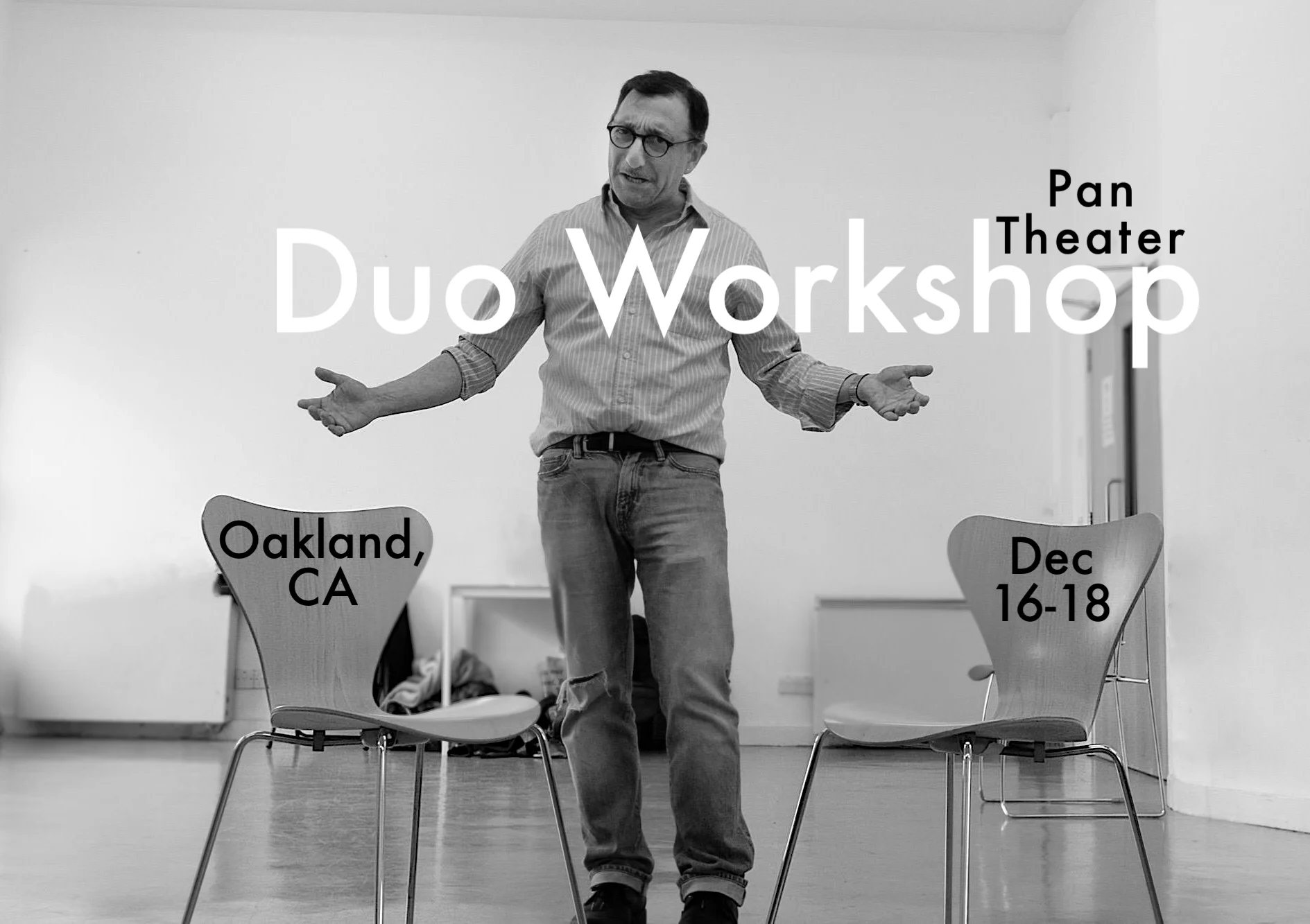 Two Acting as One, A Duos Workshop — There are more duos performing on stages all over the world than ever before. Some are even household names! How do you get to the point where you and your partner are listening on a “deep tissue level,” silently, secretly, seamlessly working as one? Two Acting as One, A Duos Workshop is a masterclass intensive that focuses on identifying a duo’s unique voice/strength/style, culminating in an evening’s performance. This workshop is open to 8 duos, and takes place over a weekend. There's a performance on Sunday night!