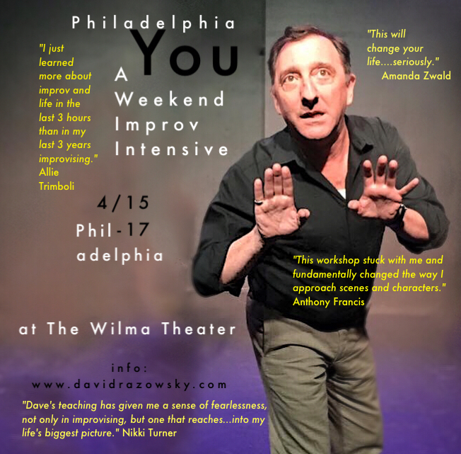 A Masterclass Dedicated to “You, Philly”! Set aside all of the unnecessary elements of improv training and replace them with a life-changing awareness of “You being on stage with you.”