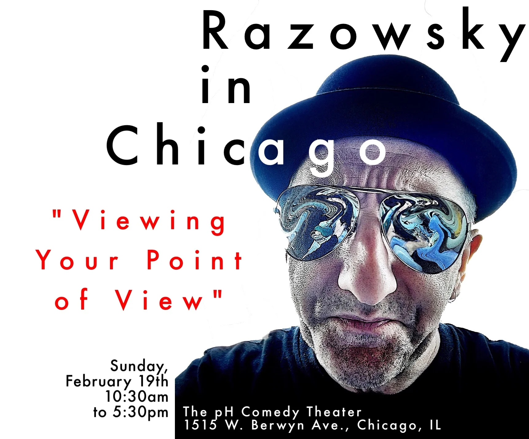 It's a rare "Razowsky in Chicago" improv workshop, this one zeroing in on the one thing that'll keep your scenes focused: Point of View. Know it. Learn it. Use it. Surrender it. That's what we'll be working on, and that's what you'll take away. Your ensemble members will ask "What's your secret?" (Unless, of course, they're here, too!) February 19th, 10:30am - 5:30pm.