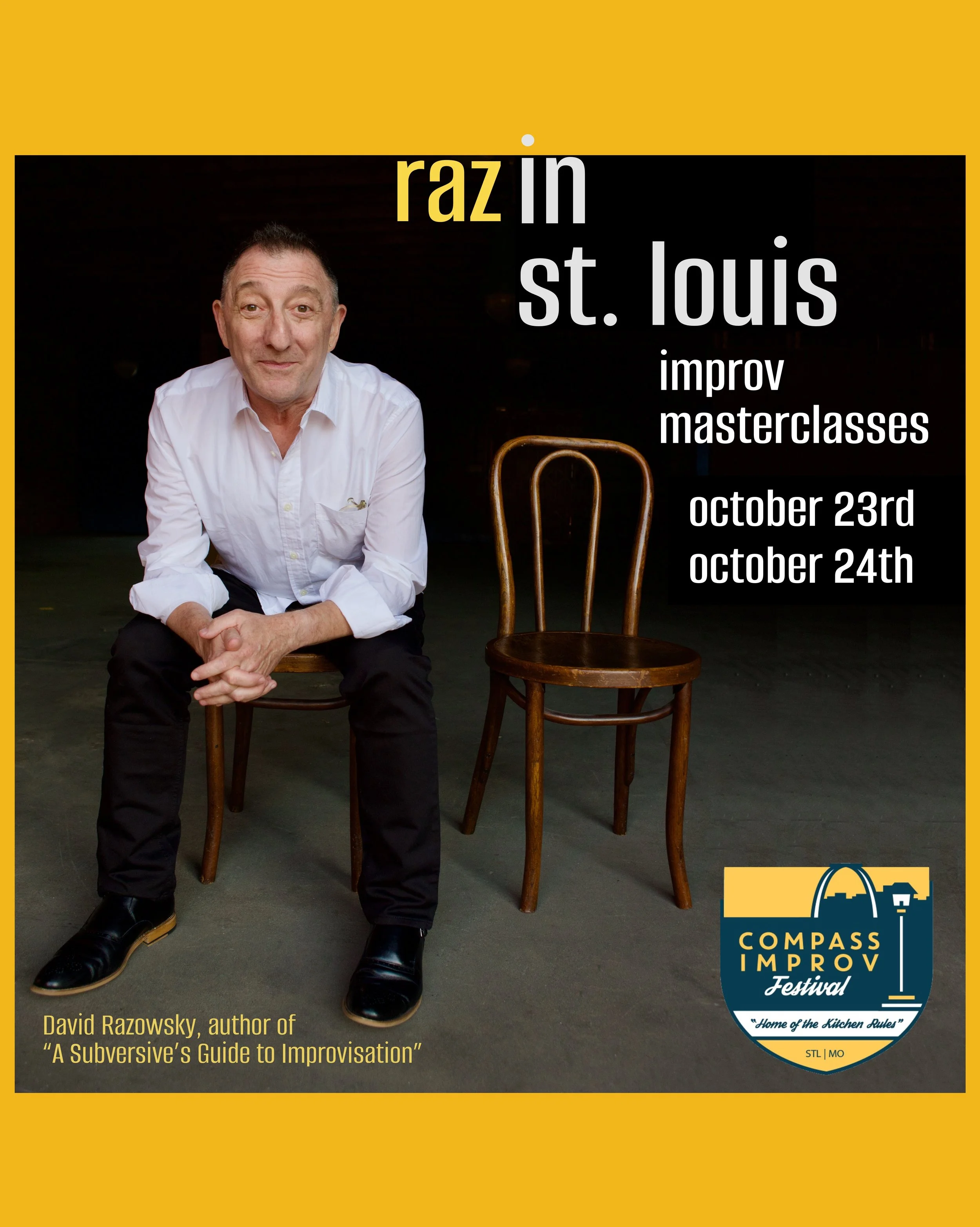 This will be my first time teaching workshops in St. Louis, and I’m overjoyed. The improv we know today started with The Compass Players at the Crystal Palace in St. Louis. It’s where Theodore J. Flicker, Mike Nichols, Elaine May, and Del Close codified principles to guide improvisational players.
