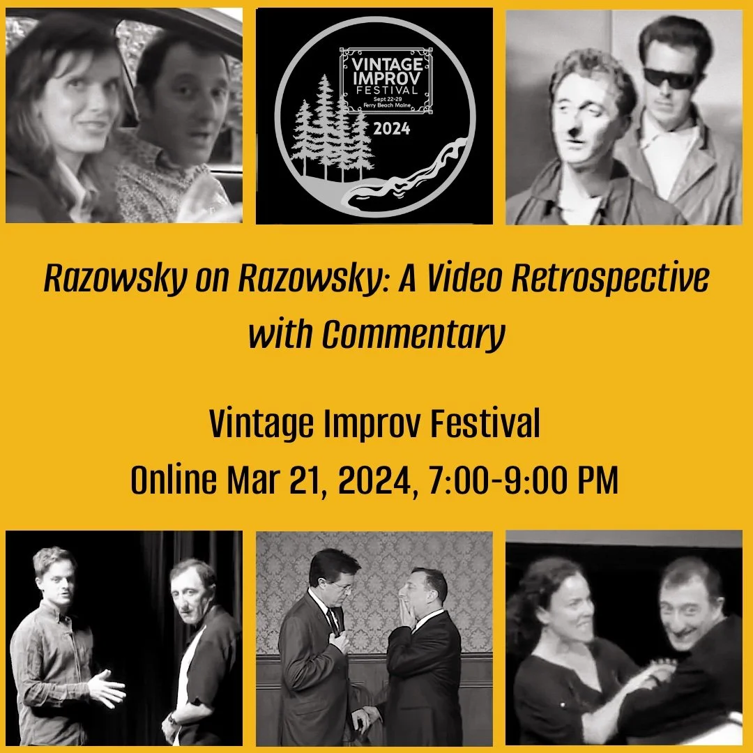 I’m extremely lucky to have many of my favorite improvised scenes recorded. I’ve used them to define improv moves described in my book A Subversive’s Guide to Improvisation, Moving Beyond “Yes, and,” but this is the first time I’ll be able to comment on these moves in real time! I’ll be screening several scenes, talk about choices my partners and I have made, and open up the discussion to the audience, who are encouraged to ask questions and make comments throughout the masterclass. All online! Proceeds benefit scholarships to the Vintage Improv Festival.