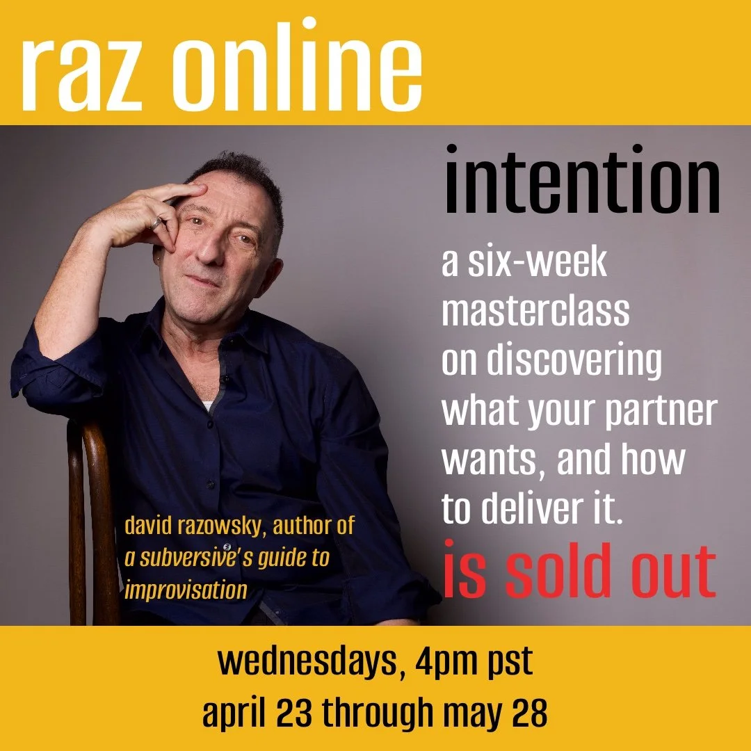 I’ve been watching a lot of improv lately, and I’ve noticed how often the two actors in the scene pull in myriad directions, having separate ideas of where they’d like the scene to go. It’s as if they’re two different scenes—because they are. They aren’t communicating, so the scene is a mess that’s frustrating to be a part of and challenging to watch.